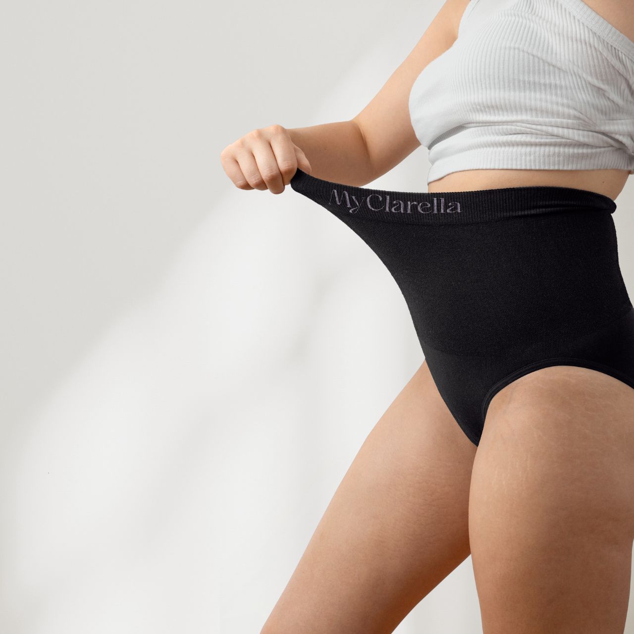 The MyClarella® Support Panty is the perfect combination of comfort and support for the period after birth. Made of 47% cotton, the panty feels pleasant on the skin and at the same time ensures that birth injuries get enough air. The high-cut cut offers you optimal support and is therefore ideal for mothers who have had a vaginal birth and mothers who have had a cesarean section.